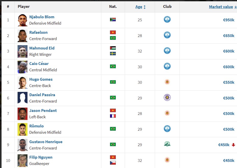 Mới đây, chuyên trang Transfermarkt đã cập nhật bản danh sách top cầu thủ có giá trị chuyển nhượng cao nhất tại V-League. Theo đó, tiền vệ Njabulo Blom thuộc biên chế CLB Thép Xanh Nam Định là cầu thủ có giá trị cao nhất khi được định giá 950.000 Euro. Tân binh của đội bóng thành Nam mang quốc tịch Nam Phi và đã thể hiện được năng lực tại MLS trước khi cập bến nhà đương kim vô địch V-League, một thương vụ được đánh giá cao.